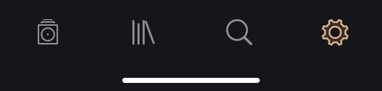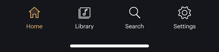 From left to right, "Browse" (or home), Library, Search, and Settings.