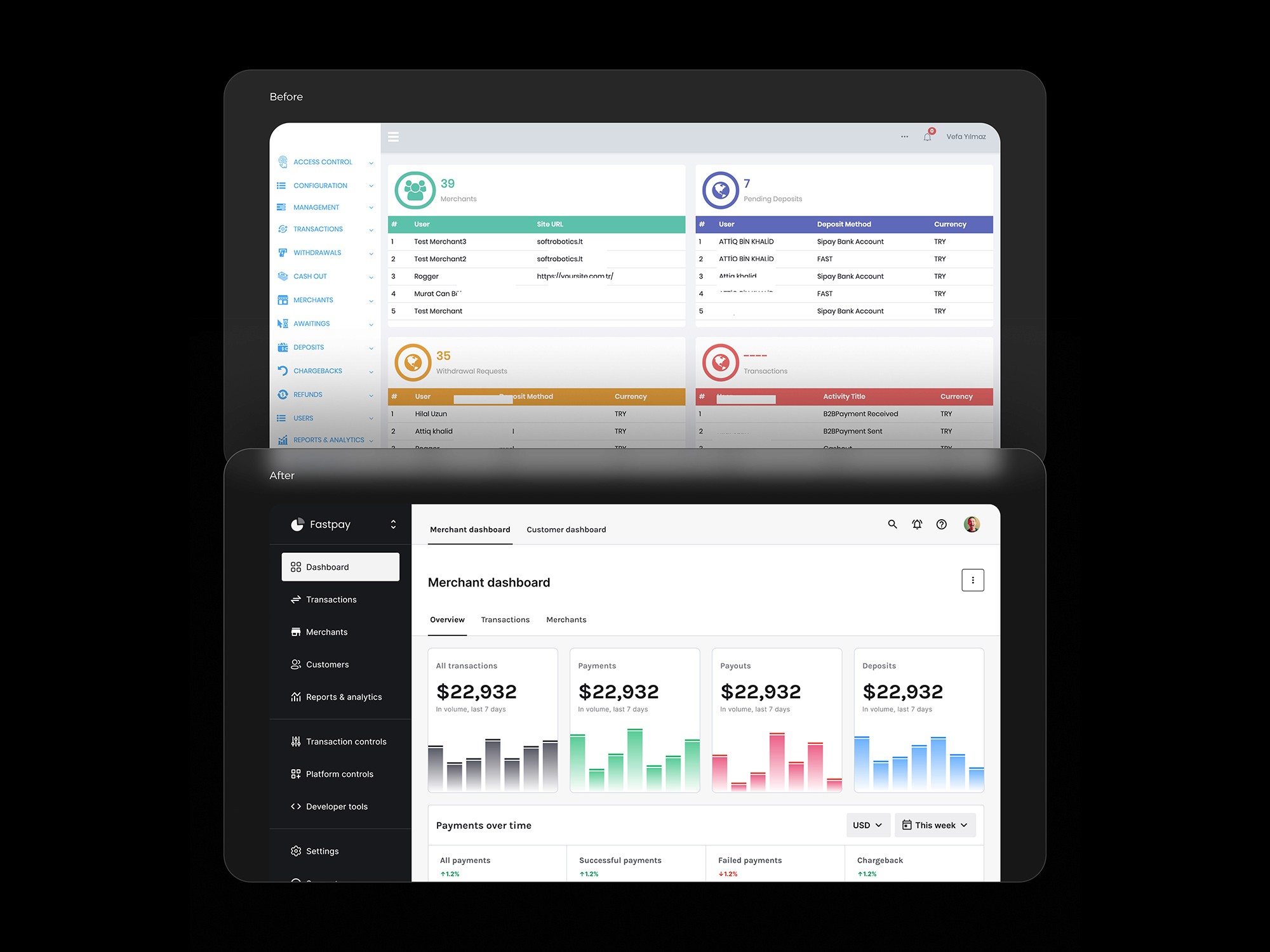 Redesigning data heavy payment gateway platform with over 400 screens on web and mobile.